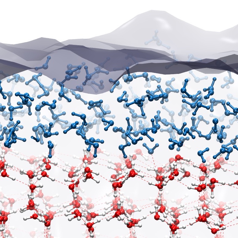 We study the physicochemical properties of the surface of ice, and its effect as a natural catalyst of reactions that impact the chemistry of the atmosphere.
